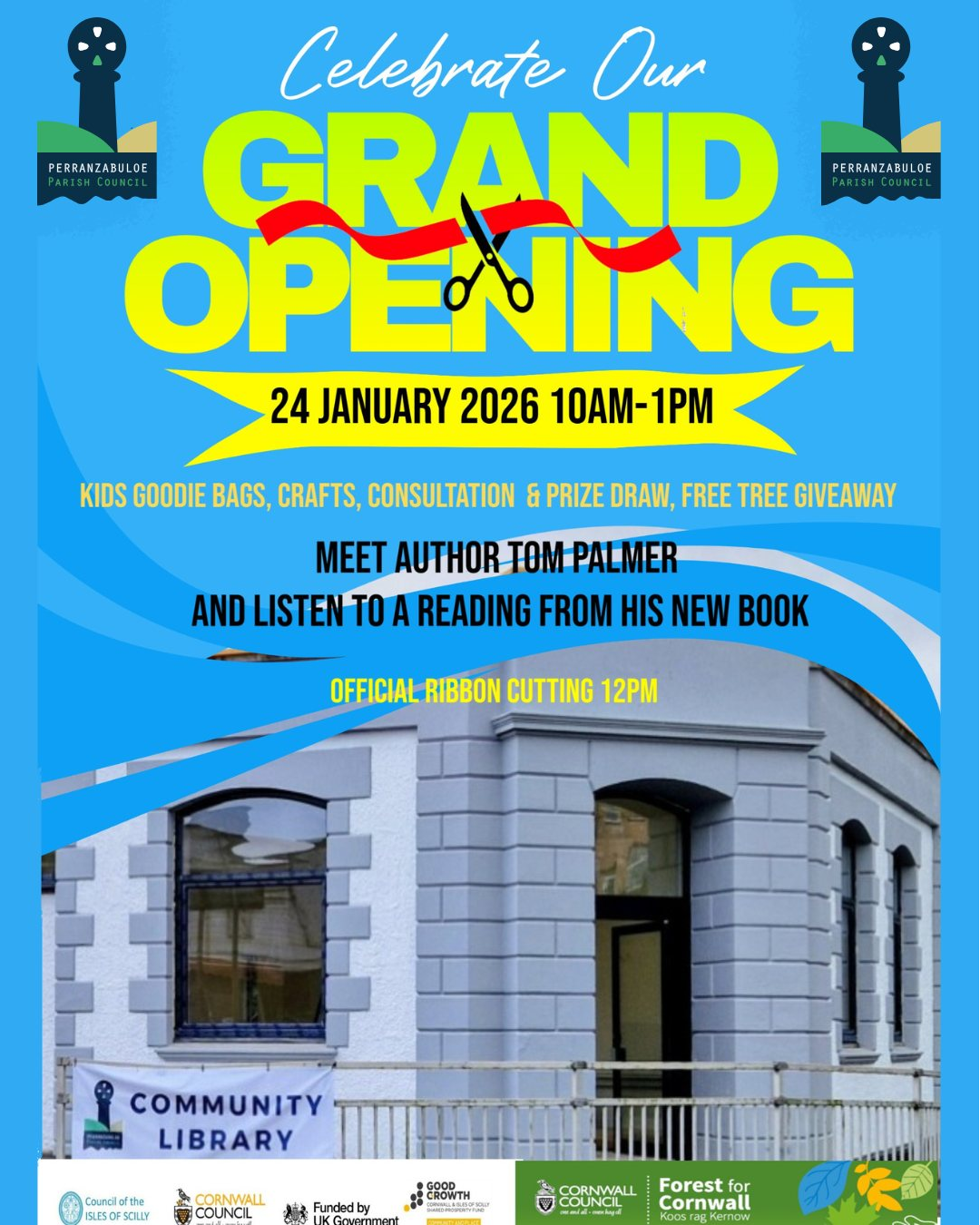 Perranporth library opening and meet children’s author Tom Palmer Sat 24 Jan
